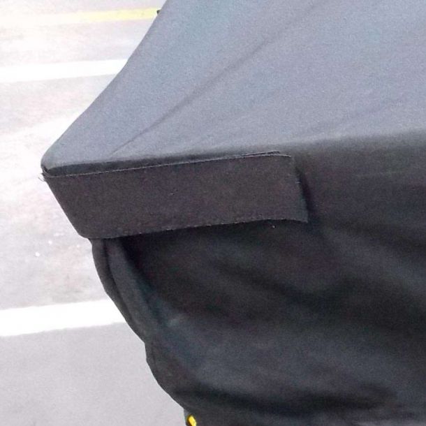 - Eingenähte Kunststoffecken schützen die Abdeckung vor den scharfen Kanten der Gitterbox.