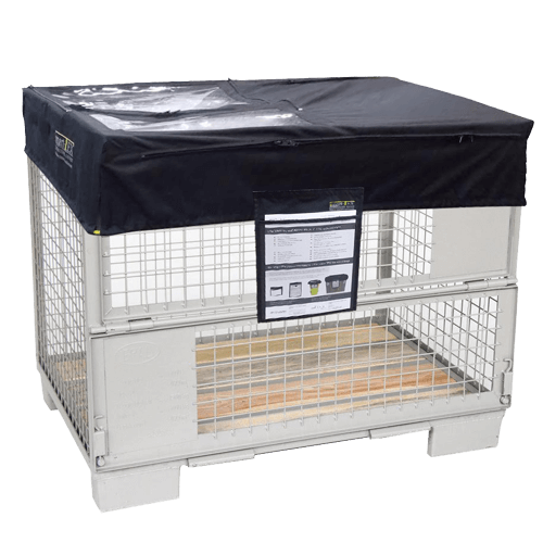 Die preisgünstige smart-TEX Abdeckung 030-0 ist unsere Standardabdeckung zum Schutz des Inhalts Ihrer Gitterboxen vor Schmutz und Staub.