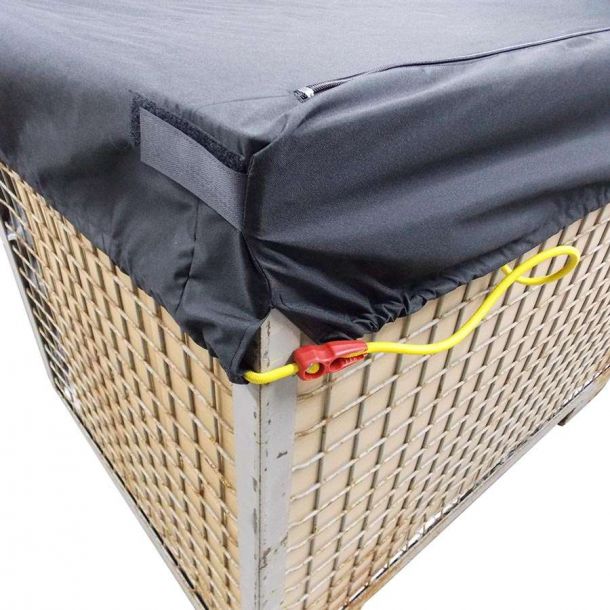 - eingenähte Kunststoffecken schützen die Abdeckung vor den scharfen Kanten der Gitterbox.