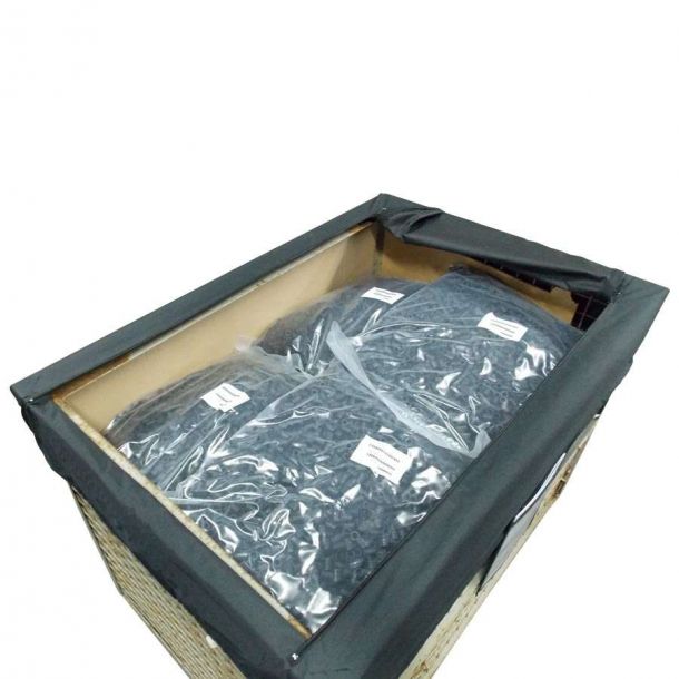 Wenn Sie Kunststoffgranulat oder andere Materialien in Gitterboxen lagern und diese mittels Sauglanze fördern wollen, kann die smart-TEX Abdeckung 030-1 für Sie interessant sein.