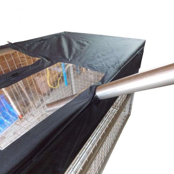 Die Reißverschlüsse sind so angeordnet, dass sich die Lanzen an der Gitterbox abstützen können und die Abdeckung von den Lanzen nicht verschoben wird.
