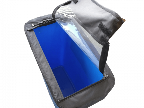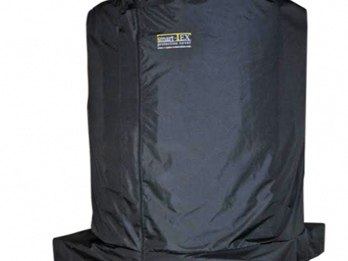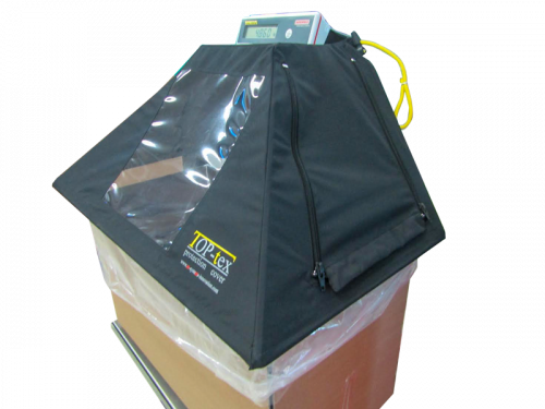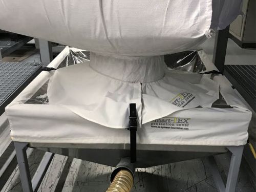 Zweiteilige Abdeckung für die Auslassöffnung eines BIG BAG und des Einfülltrichters.
